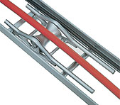 Rodillo para el interior de la bandeja • Con travesaños de 500 mm para apoyarse en la bandeja.• Después del tendido este rodillo se puede quitar por debajo de la bandeja.• Construcción de acero galvanizado con rodillo de aluminio.